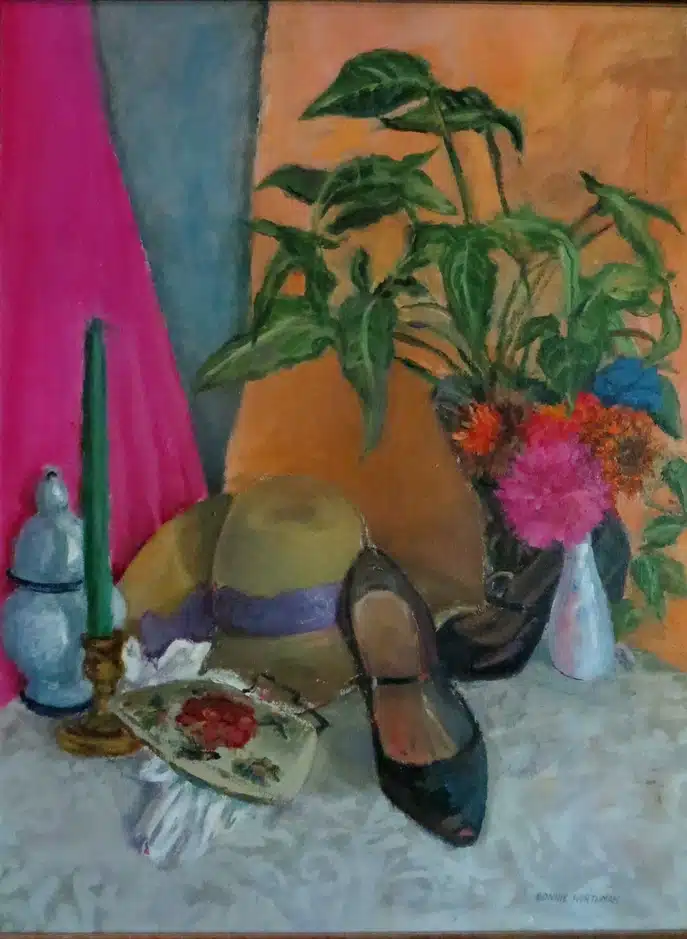 STILL LIFE WITH SHOE, GLOVE AND ANTIQUE PURSE